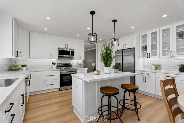 Price Improvement! Sweeping hill and sparkling city-light views, a beautifully upgraded interior, and a large backyard designed for true California indoor-outdoor living—this Mission Viejo home has it all. From relaxing evenings under the covered patio to entertaining friends and family, the expansive backyard features custom pavers, a lighted patio cover with ceiling fan, plumbed gas for an outdoor BBQ, new vinyl fencing, and space for outdoor dining, lounging, pets, or play. Inside, the home showcases luxury vinyl flooring, updated baseboards, upgraded lighting with recessed lights, and Milgard windows and sliding glass door. The inviting living room features a stunning custom fireplace and wet bar—perfect for entertaining—while the formal dining area is ideal for hosting gatherings. Currently configured as a 4-bedroom with a spacious bonus room that can easily convert to a generous 5th bedroom, private suite, or a 4th bedroom plus a flexible workspace. The remodeled kitchen features quartz countertops, stainless steel appliances, new cabinetry, a large walk-in pantry, and breakfast counter. Bathrooms have been tastefully upgraded. Major system improvements include a newer furnace, A/C condenser, water heater, and energy-efficient solar. The finished garage offers durable epoxy flooring. Located within walking distance to Linda Vista Elementary, La Paz Intermediate, and Mission Viejo High School, and just minutes from shopping, dining, entertainment, and easy access to the 5 Freeway. Lake Mission Viejo membership is included, providing access to private beaches, pools, parks, summer concerts, and year-round recreation. Residents may also join the nearby Montanoso Club with fitness facilities, pool, spa, and tennis courts. Lake membership runs with the property at $193 semi-annually.